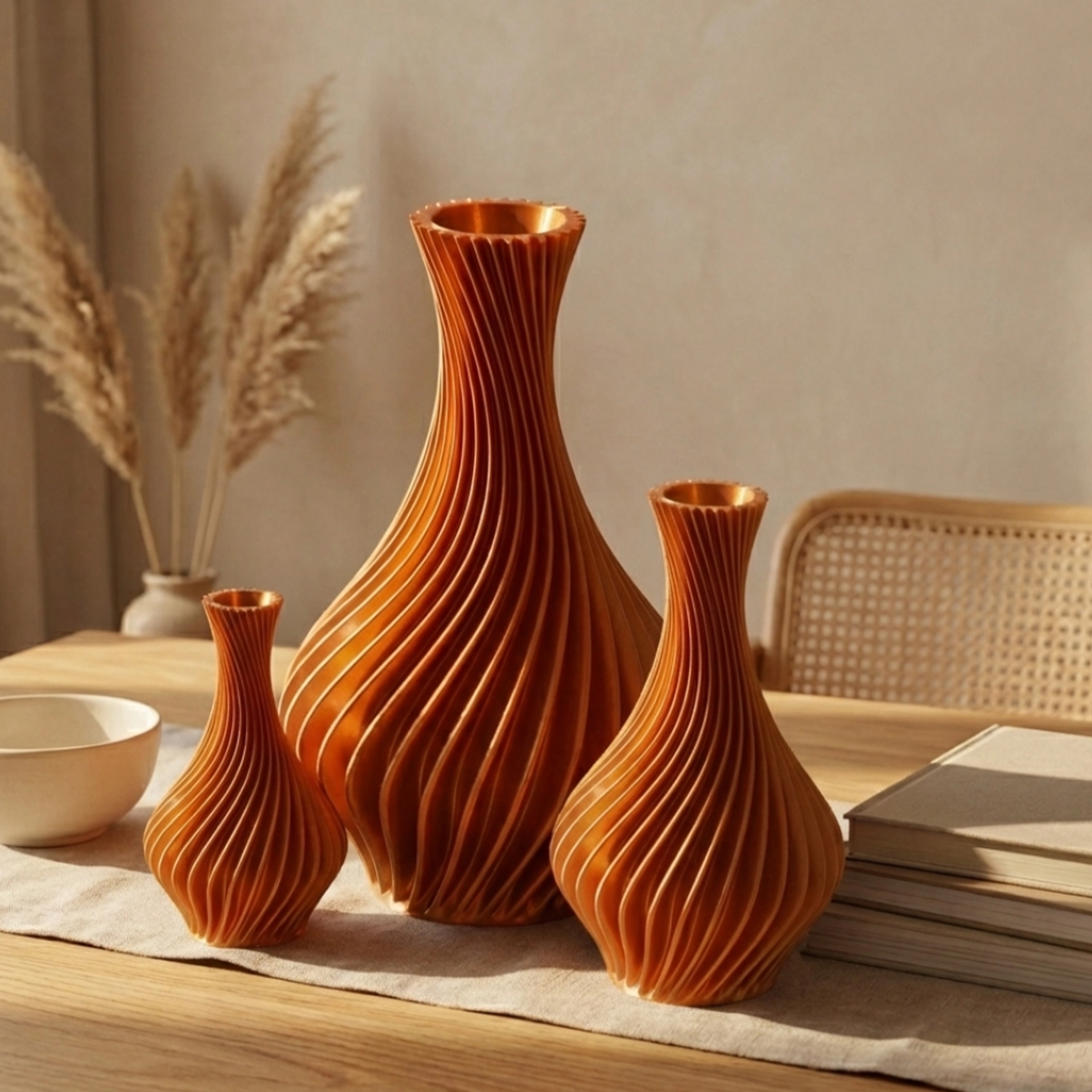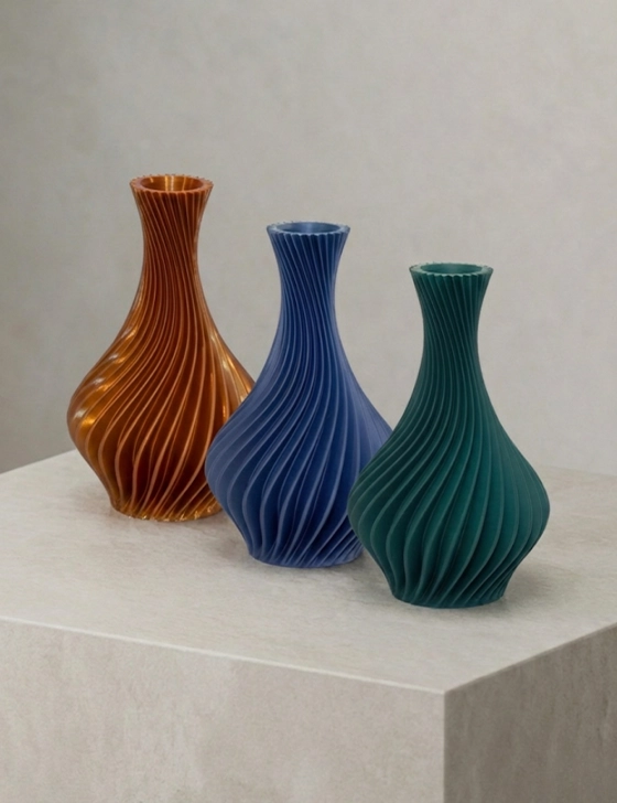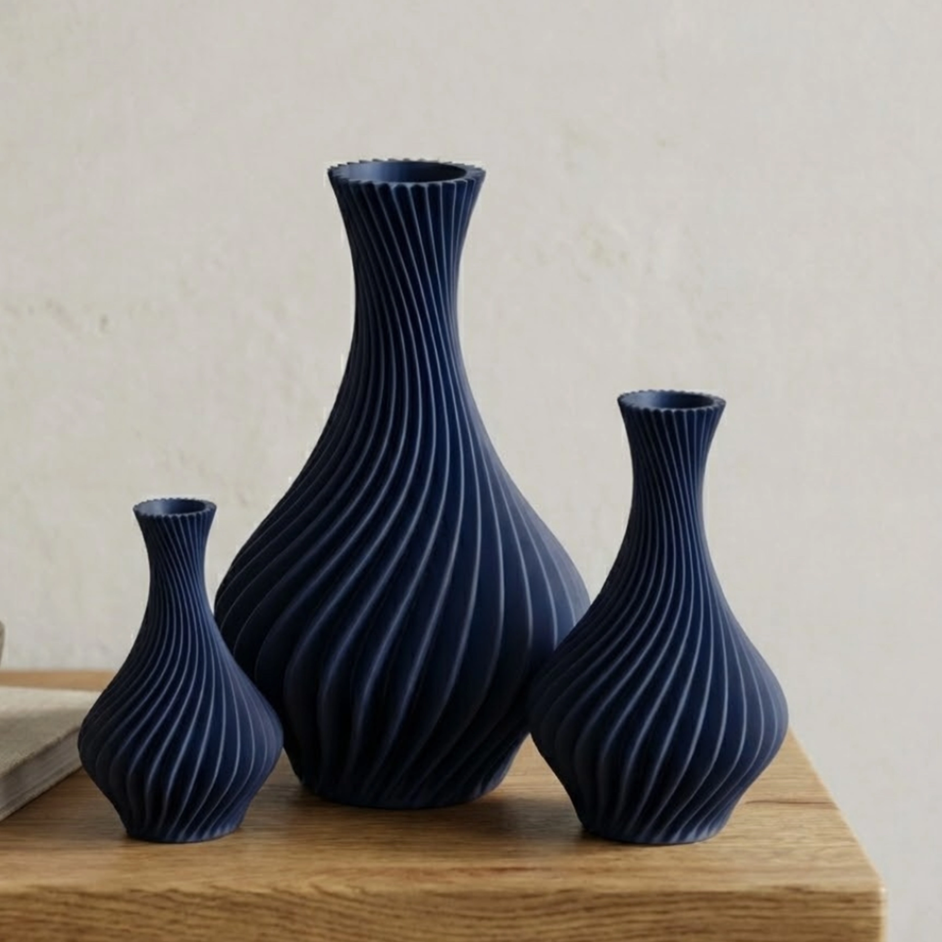 Its spiral ribs bring energy and depth without clutter, creating a premium play of light and shadow from every angle. Choose a bold colour to make it the hero, or a quieter tone to blend into a refined, modern palette.